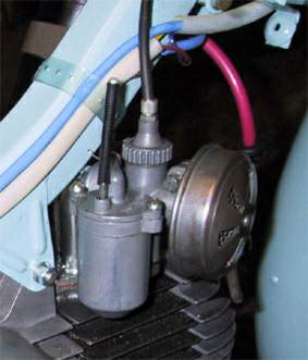 Karburator: Původní karburátor určený pro typ 550 Jikov 2912 s odkapávací miskou měl zaplavování plovákové komory vyvedené přes kapotáž táhlem z drátěného profilu. Provádělo se tahem nahoru. Sací filtr se vyráběl ve dvou verzích, a měl průduchy na rubové straně a zavíraly se pootočením celého tělesa filtru. Karburátor montovaný na válec byl nasměrován na levou stranu ve směru jízdy. V závěru výroby byl celý karburátor zmodernizován na Jikov 2914. Nemontovala se odkapávací miska, zaplavování se provádělo tlakem na tyčinku vyčnívající přes kapotáž pod nádrží a sání bylo z lícní strany. Průduchy se zavíraly lisovaným plechovým profilem s páčkou, která vyčnívala přes kapotáž prsíček a byl nasměrován vpravo.