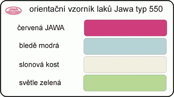 Lak: Nejrozšířenější barvou byla klasická jawácká - červená. Další, už méně rozšířená, která Pařezu velmi slušela byla bleděmodrá barva. Poslední, tak trochu rarity byly slonová kost a světle zelená. Speciální lak měly Pařezy, používané v československé armádě, lakovaly se řidítka, rámeček světlometu i kola khaki zelenou barvou. Přesné odstíny však budete hledat velmi těžce. To dokazují dochované díly v originálním laku z různých typů a ročníků motocyklů JAWA. Technické možnosti tehdejších lakoven byly přece jen omezené. Občas se lakovalo i bez podkladových materiálů a odstíny byly plus-mínus. Lesk se dnešním moderním lakům taky nevyrovnal. Přesto mě velmi překvapila mechanická odolnost laků. Výborně drží a nedokážou si s ním poradit ani agresivní rozpouštědla. Všechny laky, mimo khaki zeleň pro armádu, zdobily zlaté linky na blatnících, krytu řetězu, prolisech kapotáže a prsíčkách. Na palivové nádrži byly zlaté firemní znaky JAWA.